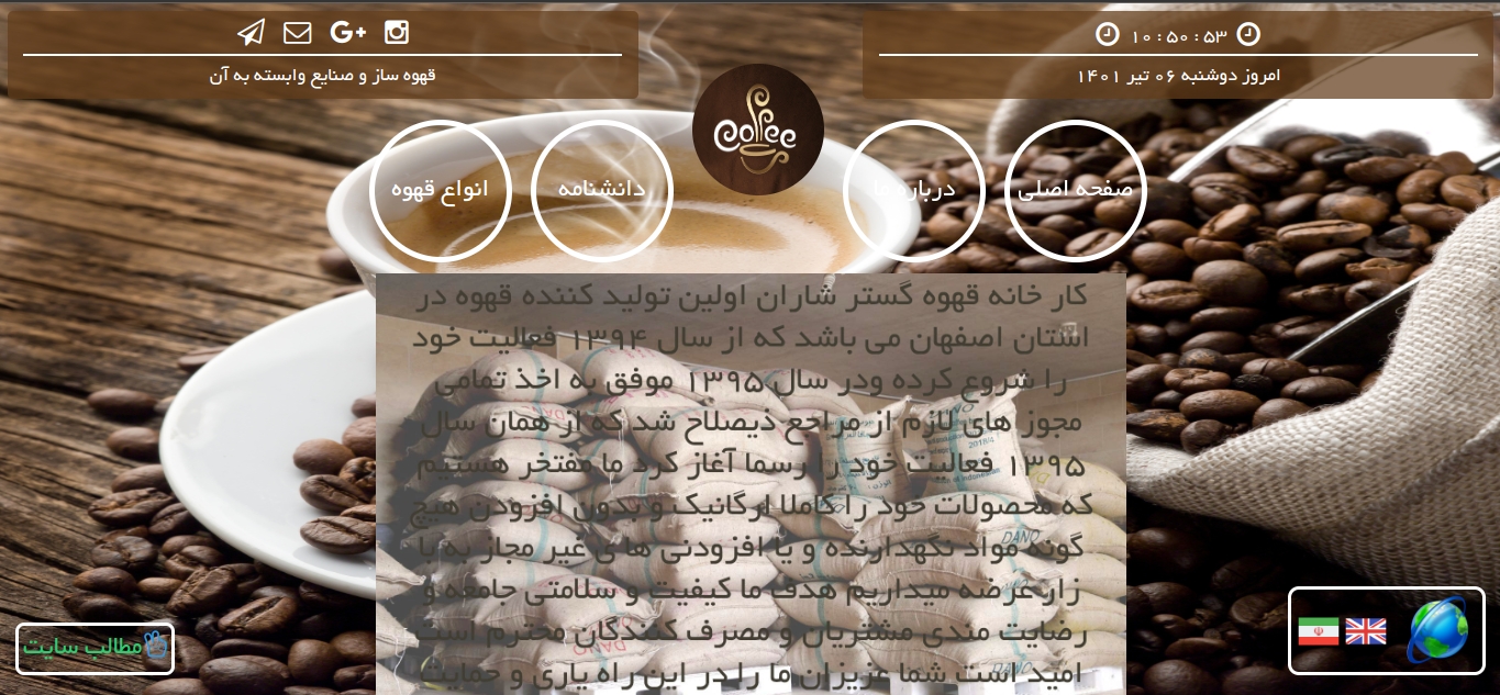 وبسایتی فانتزی با طرح و شکل زیبا و مدرن برای معرفی محصولات تولیدی و صادراتی قهوه.