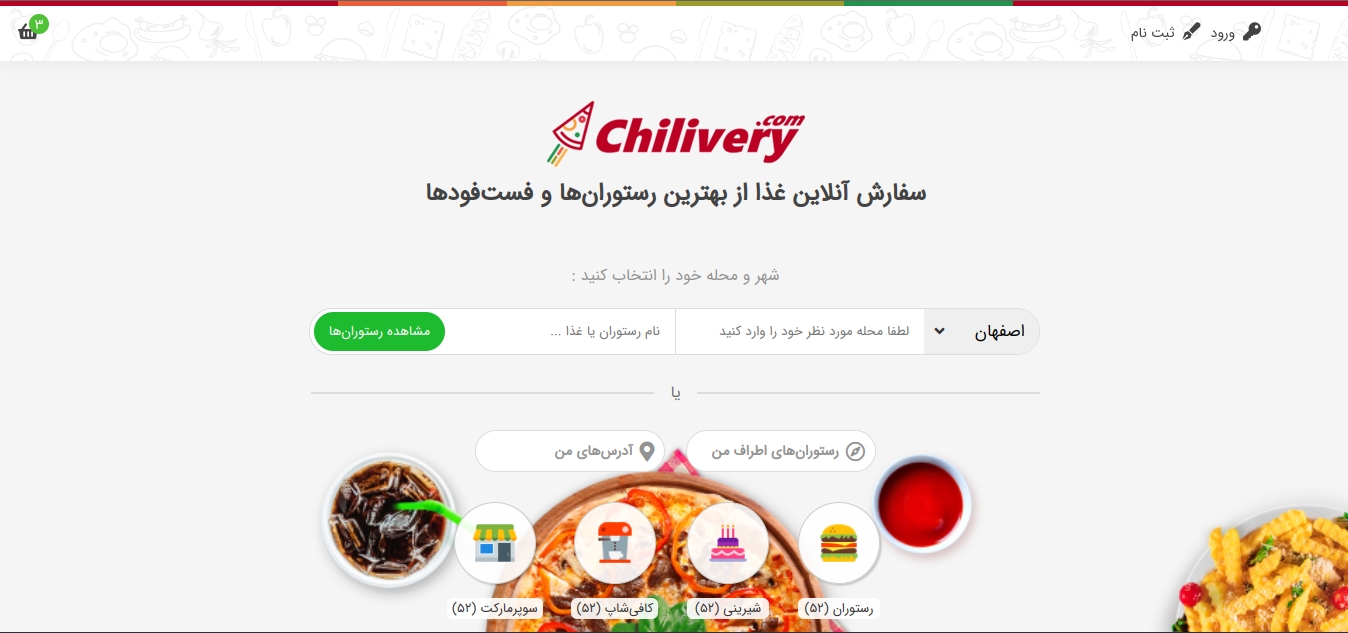 وبسایتی زیبا و مدرن بر پایه طرح شرکت چیلیوری برای سفارش آنلاین غذا و محصولات خوراکی.